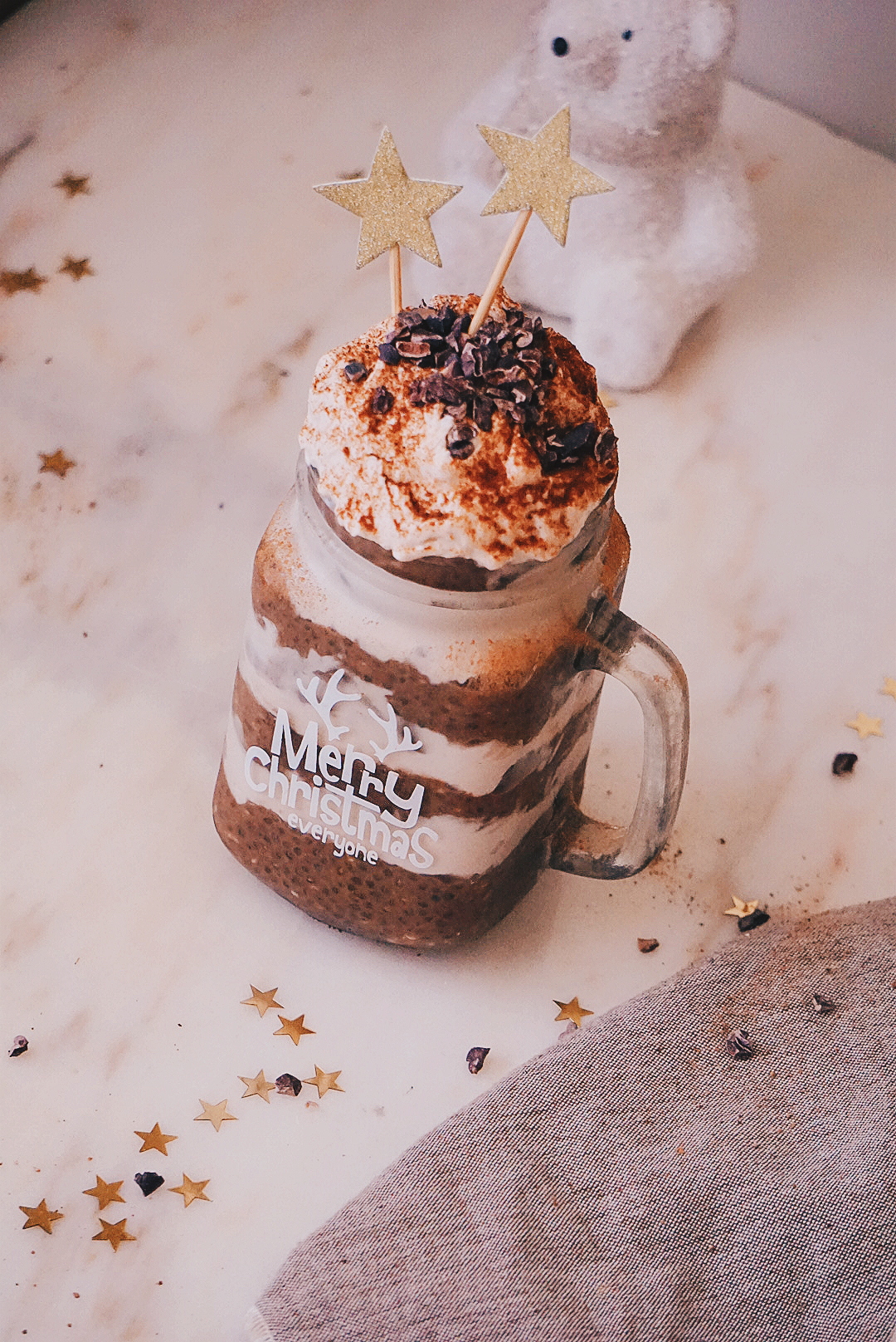 Sabemos que nestas épocas festivas abusamos um bocadinho nos doces, por isso criei uma receita de uma mousse de chia com maca e chocolate que é bem mais saudável e delicada, porém todos vão gostar, até as avós! Esta mousse foi feita com a mistura da iswari de maccacino, a qual tem cacau em pó, açúcar de cocô e maca, mas podem usar só cacau em pó e um adoçante a vossa escolha.