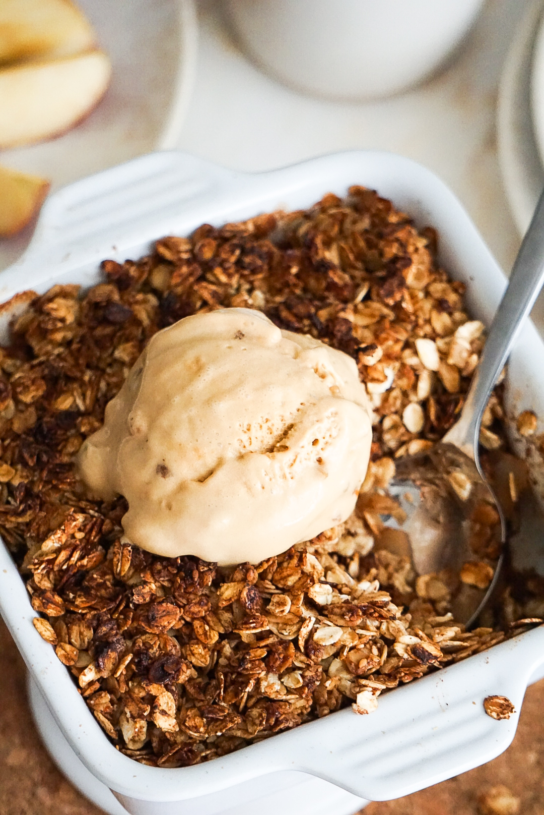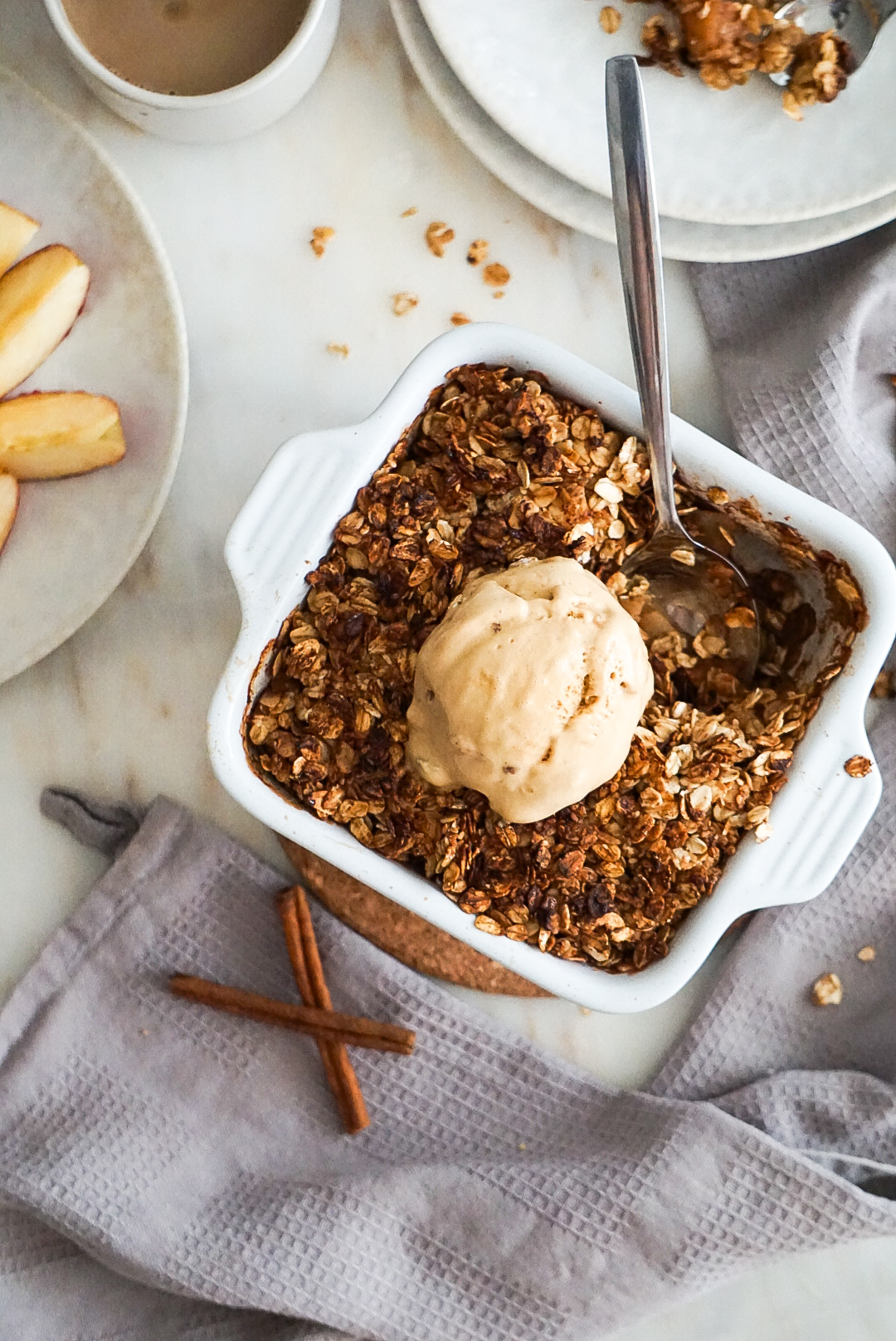 Já cheira a outono e esta é uma das minhas receitas favoritas para fazer nesta estação! Crumble de maçã, desta vez com aveia. Amo a textura da aveia e combina tão bem com uma maçã assada com especiarias. Uma receita bem simples, mas cheia dos sabores mais emblemáticos desta estação.