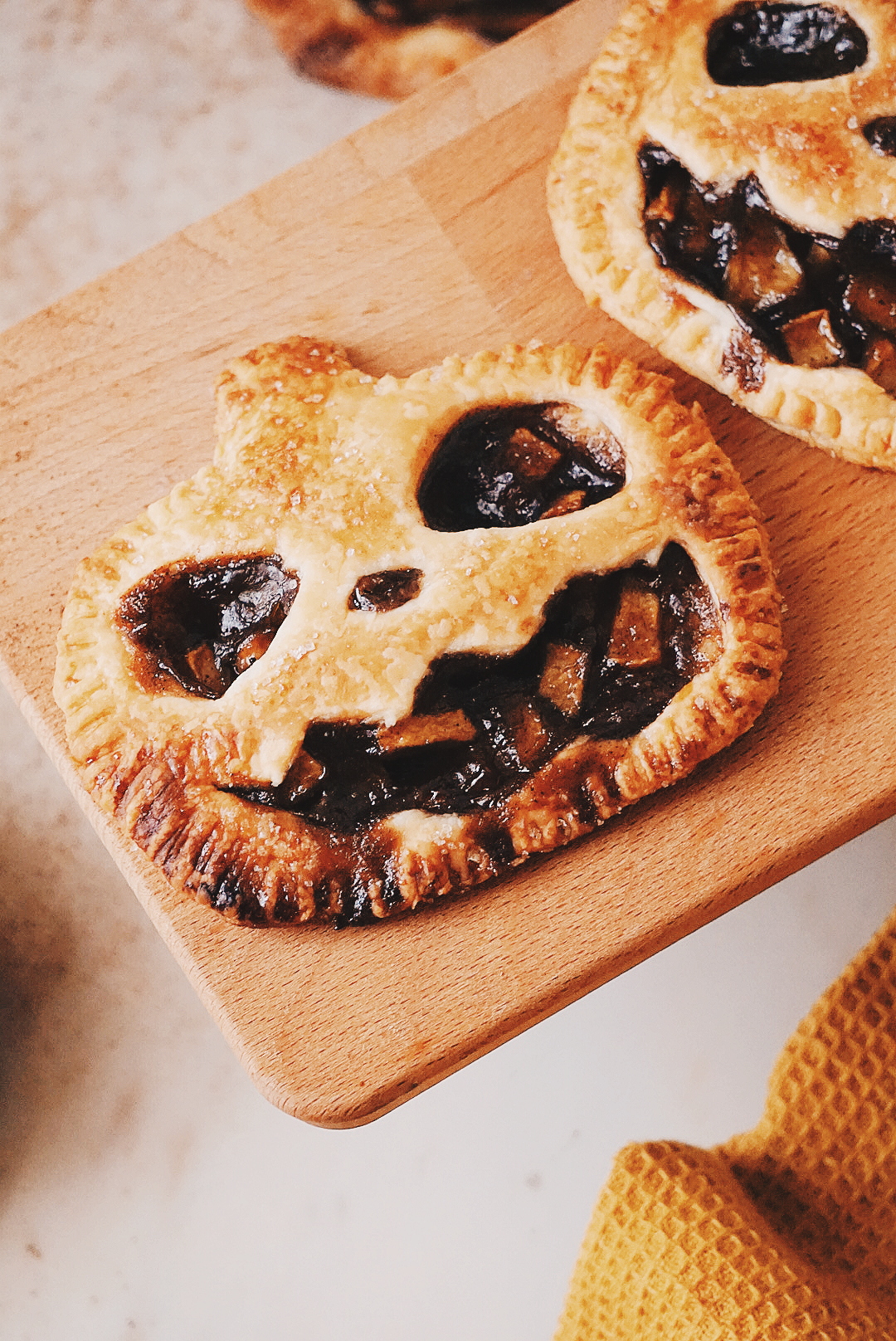 Boooh! O Halloween está a chegar, por isso preparamos algumas receitas assustadoras para fazerem para as vossas festinhas de Halloween. Esta primeira receita é muito simples e deliciosa. Minis tartes de maçã em forma de abóbora assustadora! Uma receita totalmente vegan e muito barata de fazer.