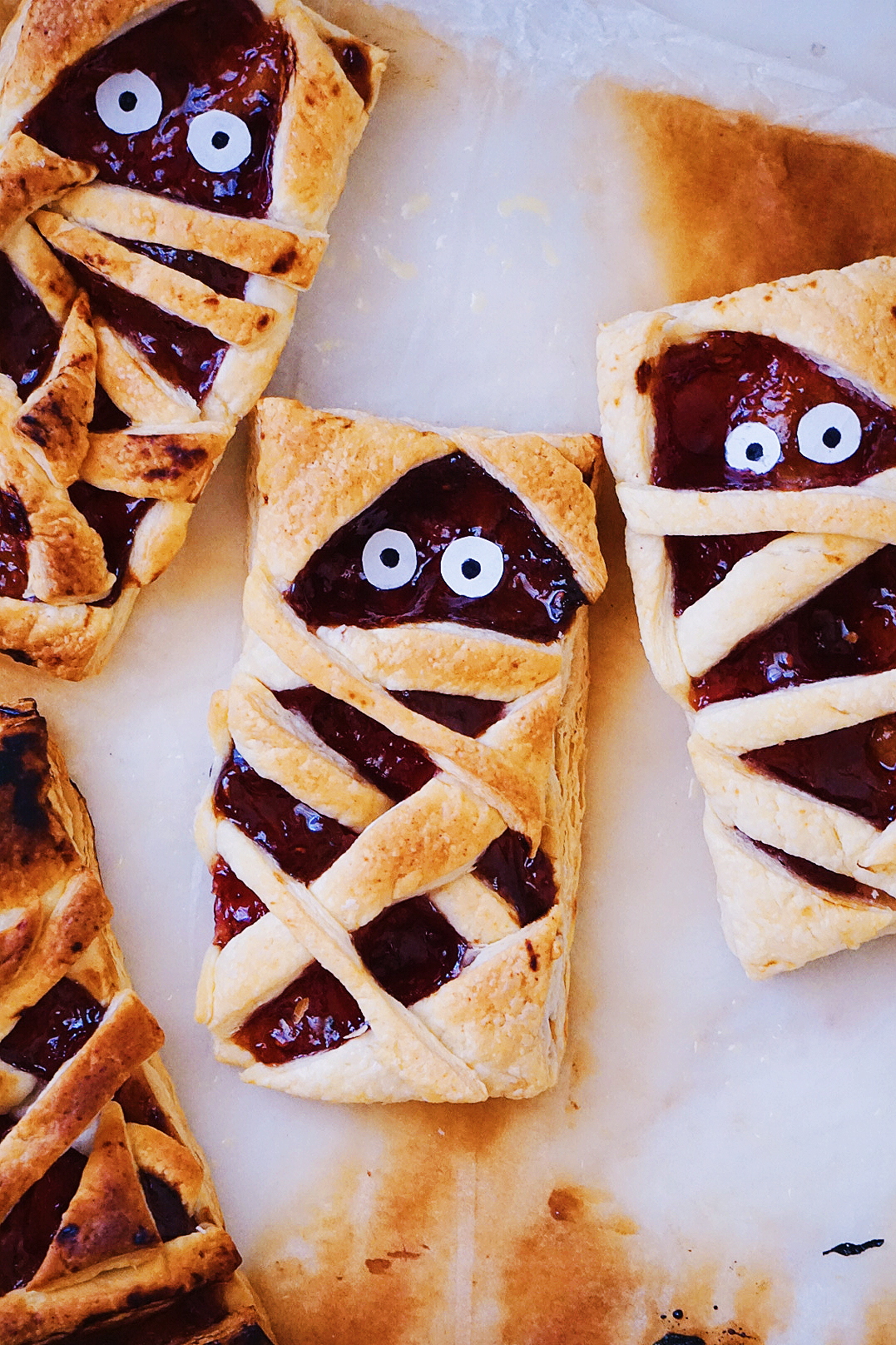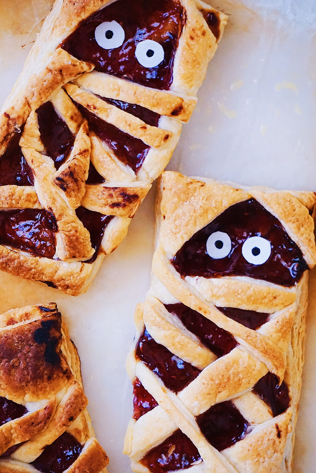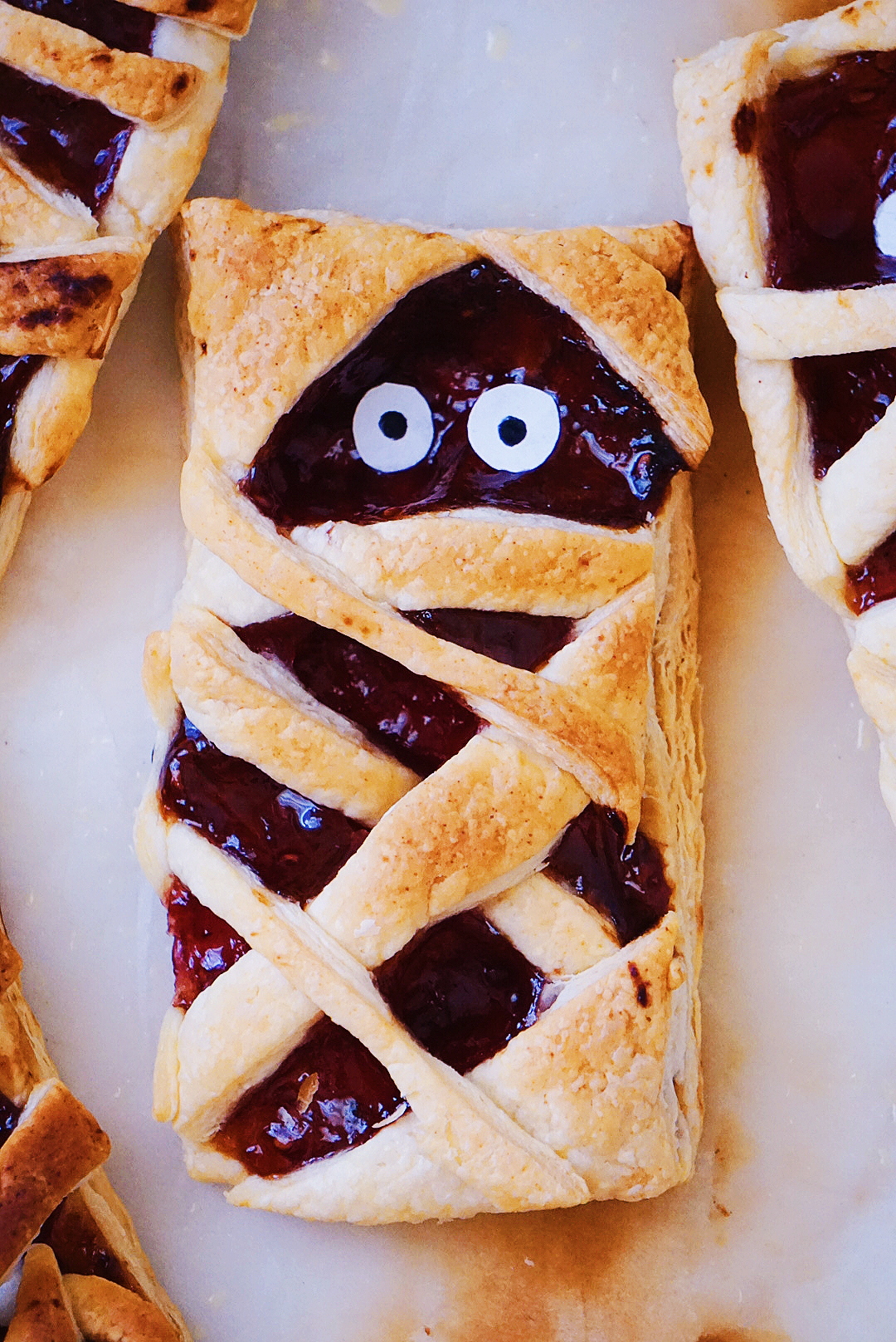 Que tal uma múmia folhada? Aqui está a nossa primeira ideia para o Halloween! Uma múmia folhada com recheio de doce de framboesa! Uma ideia muito fácil para tornarem este Halloween ainda mais assustador.