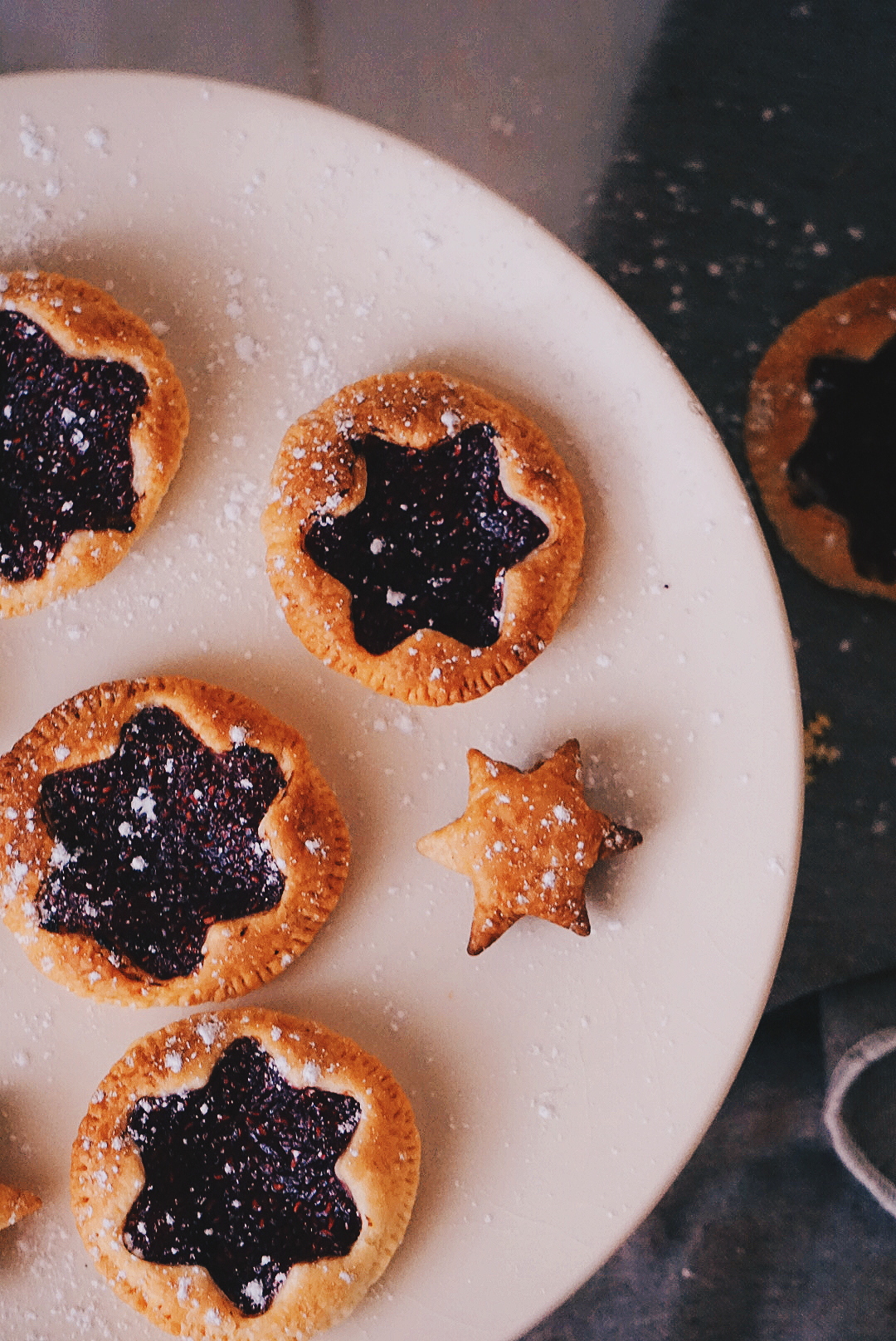 - Corta pequenos círculos da massa folhada e recheia com a geleia. Para que os dois círculos se unam é necessário usar um pouco de água nas bordas. Para tornar esta receita natalícia usei uma forma de estrela, se não tiverem juntem os dois círculos da massa com o recheio no meio. Tem em conta que é necessário perfurar a massa para que o ar saia.